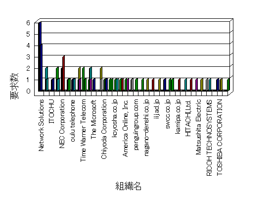 組織ユーザーにインターネット接続を提供する、商用または非営利団体、学術・行政機関などの、インターネット ドメイン で識別される団体や組織です。Microsoft Site Server Analysis は同じ組織に登録されたすべてのドメインを 1 つの組織としてグループ化します。ドメインがデータベースで使用できない場合は、1 つのインターネット ドメインが 1 つの組織を識別するのに使用されます。