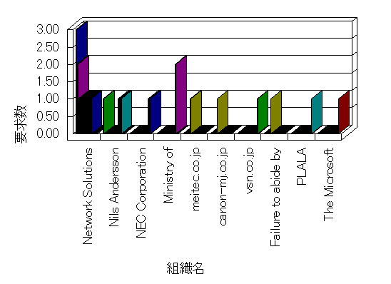 組織ユーザーにインターネット接続を提供する、商用または非営利団体、学術・行政機関などの、インターネット ドメイン で識別される団体や組織です。Microsoft Site Server Analysis は同じ組織に登録されたすべてのドメインを 1 つの組織としてグループ化します。ドメインがデータベースで使用できない場合は、1 つのインターネット ドメインが 1 つの組織を識別するのに使用されます。
