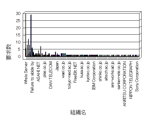 組織ユーザーにインターネット接続を提供する、商用または非営利団体、学術・行政機関などの、インターネット ドメイン で識別される団体や組織です。Microsoft Site Server Analysis は同じ組織に登録されたすべてのドメインを 1 つの組織としてグループ化します。ドメインがデータベースで使用できない場合は、1 つのインターネット ドメインが 1 つの組織を識別するのに使用されます。