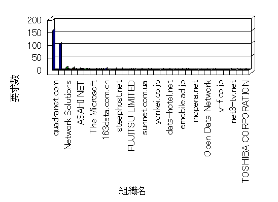 組織ユーザーにインターネット接続を提供する、商用または非営利団体、学術・行政機関などの、インターネット ドメイン で識別される団体や組織です。Microsoft Site Server Analysis は同じ組織に登録されたすべてのドメインを 1 つの組織としてグループ化します。ドメインがデータベースで使用できない場合は、1 つのインターネット ドメインが 1 つの組織を識別するのに使用されます。