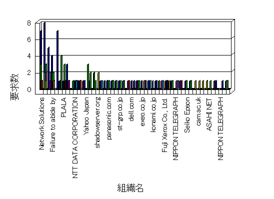組織ユーザーにインターネット接続を提供する、商用または非営利団体、学術・行政機関などの、インターネット ドメイン で識別される団体や組織です。Microsoft Site Server Analysis は同じ組織に登録されたすべてのドメインを 1 つの組織としてグループ化します。ドメインがデータベースで使用できない場合は、1 つのインターネット ドメインが 1 つの組織を識別するのに使用されます。