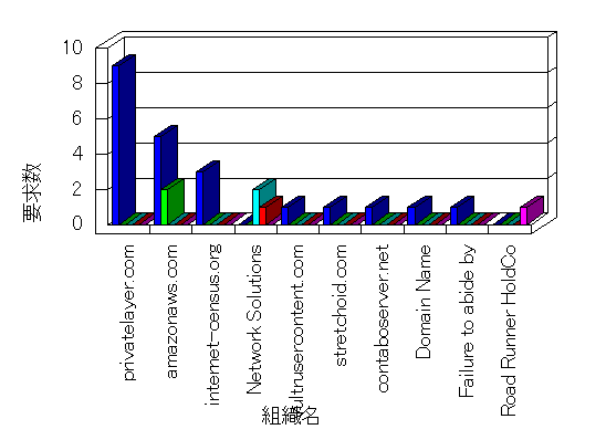 参照組織のサイトには、このサイトにリンクするページがあります。グラフでは、このサイトへのアクセス数に基づいた、上位 10 組織を示します。